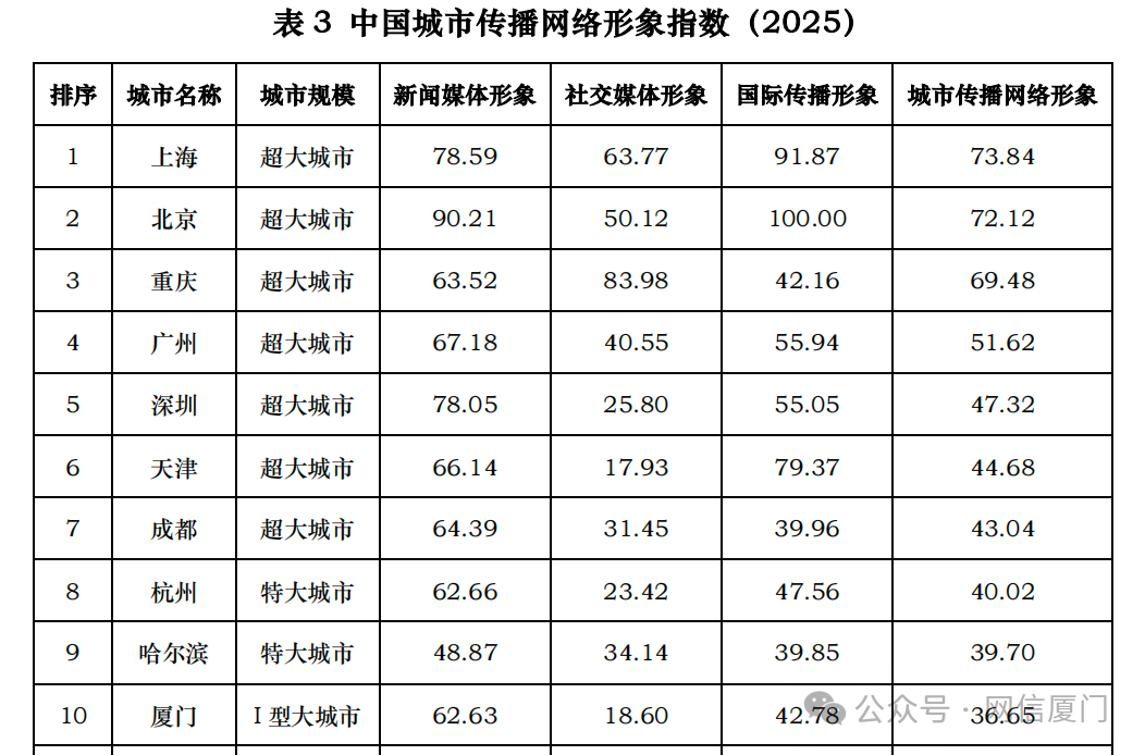 题目:《中国城市网络形象指数报告(2025)》发布!厦门以“高价值” “国际范”长红爆红