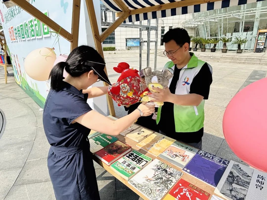周期市场的摊位前人头攒动,居民们纷纷亮出“家产”。旧衣、旧书、小电器等物品堆成小山,经工作人员分类后即将开启“新生”。居民李阿姨用三本育儿书换来两个娃娃,笑着说“知识换童趣”;居民张先生带来的小风扇一摆出来就被眼明手快的环保专家“抢购”。循环市场不仅让闲置物品找到了新的主人,也让参与者感受到了“废物利用”的快乐。