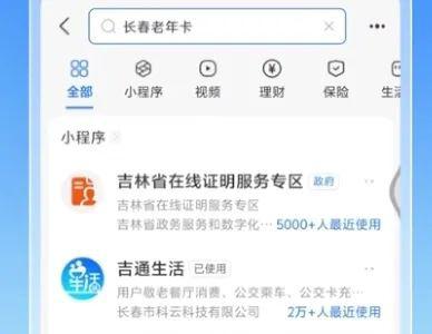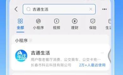 首先要打开支付宝,搜索“吉通生活”或“长春老年卡”。