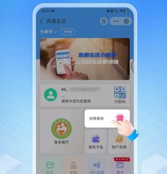 进入“吉通生活”小程序,首页有“余额查询”选项。