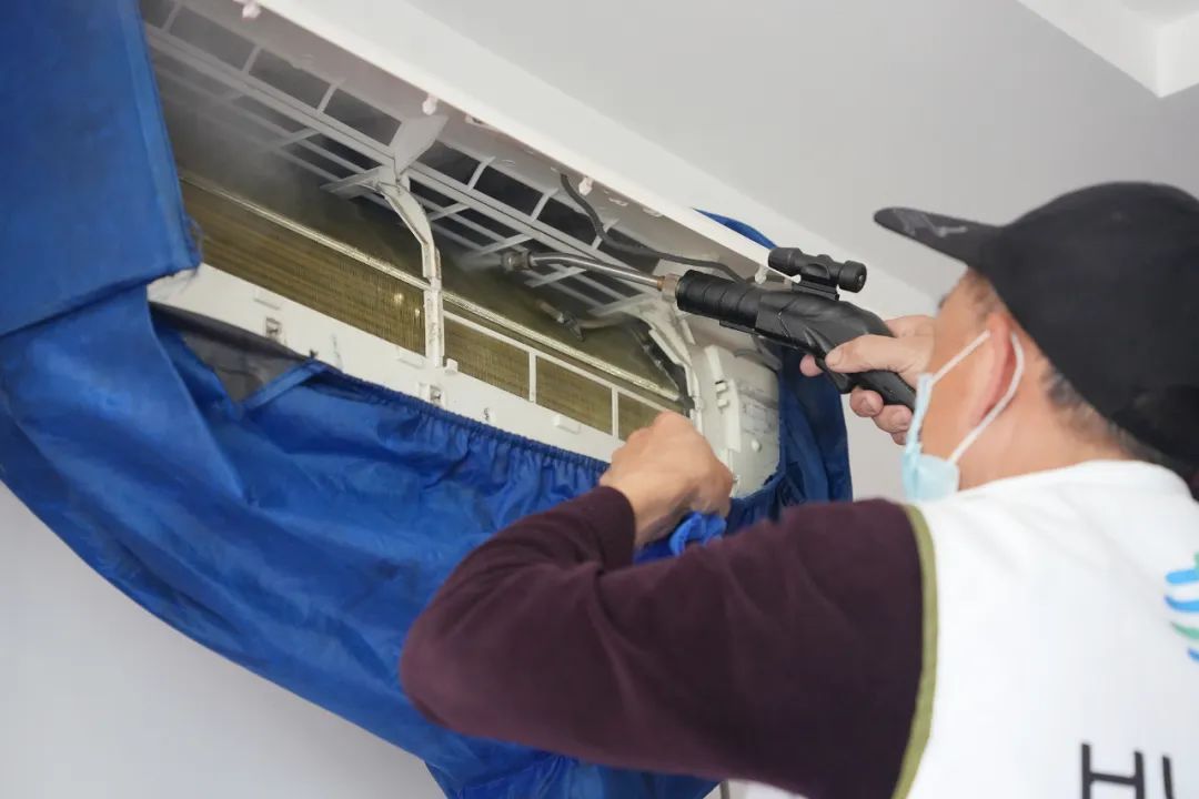 看到志愿者熟练地铺设防水设施,然后拆开空调外壳,拆下滤网逐一清洗。然后,使用专业工具对空调内部进行深度清洗,高温蒸汽机喷出的水雾,将大量粘在蒸发器上的灰尘冲走。清洗后,志愿者还耐心地将空调内外擦拭干净,并进行调试,确保空调能够正常工作。孟阿婆深受感动:“志愿者专门上门,空调洗得很干净,非常感谢!”