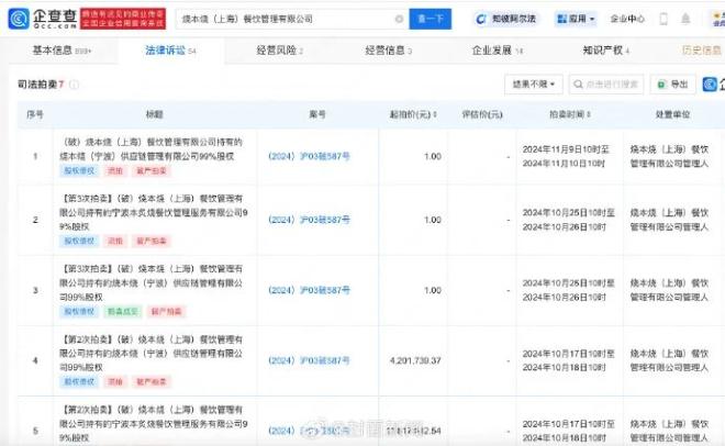 该公司名下有许多关于破产拍卖的信息,并多次限制高消费。据悉,演员张翰曾多次为烧烤品牌“火星烧烤经理”宣传。