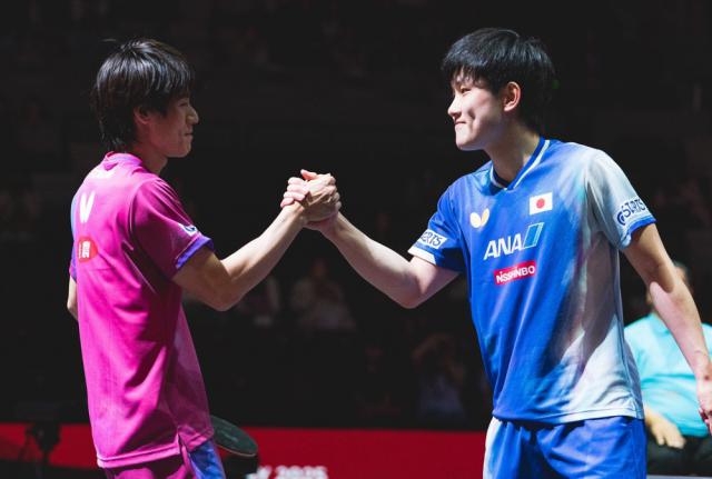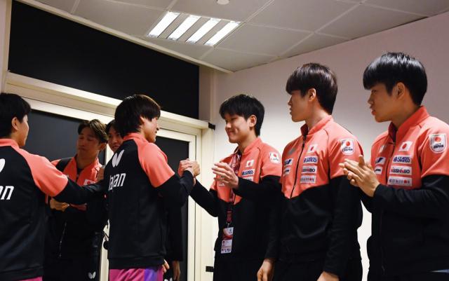 苦!张本智和排队迎接冠军队友露出假笑,一哥地位没有回到日本被冷落。