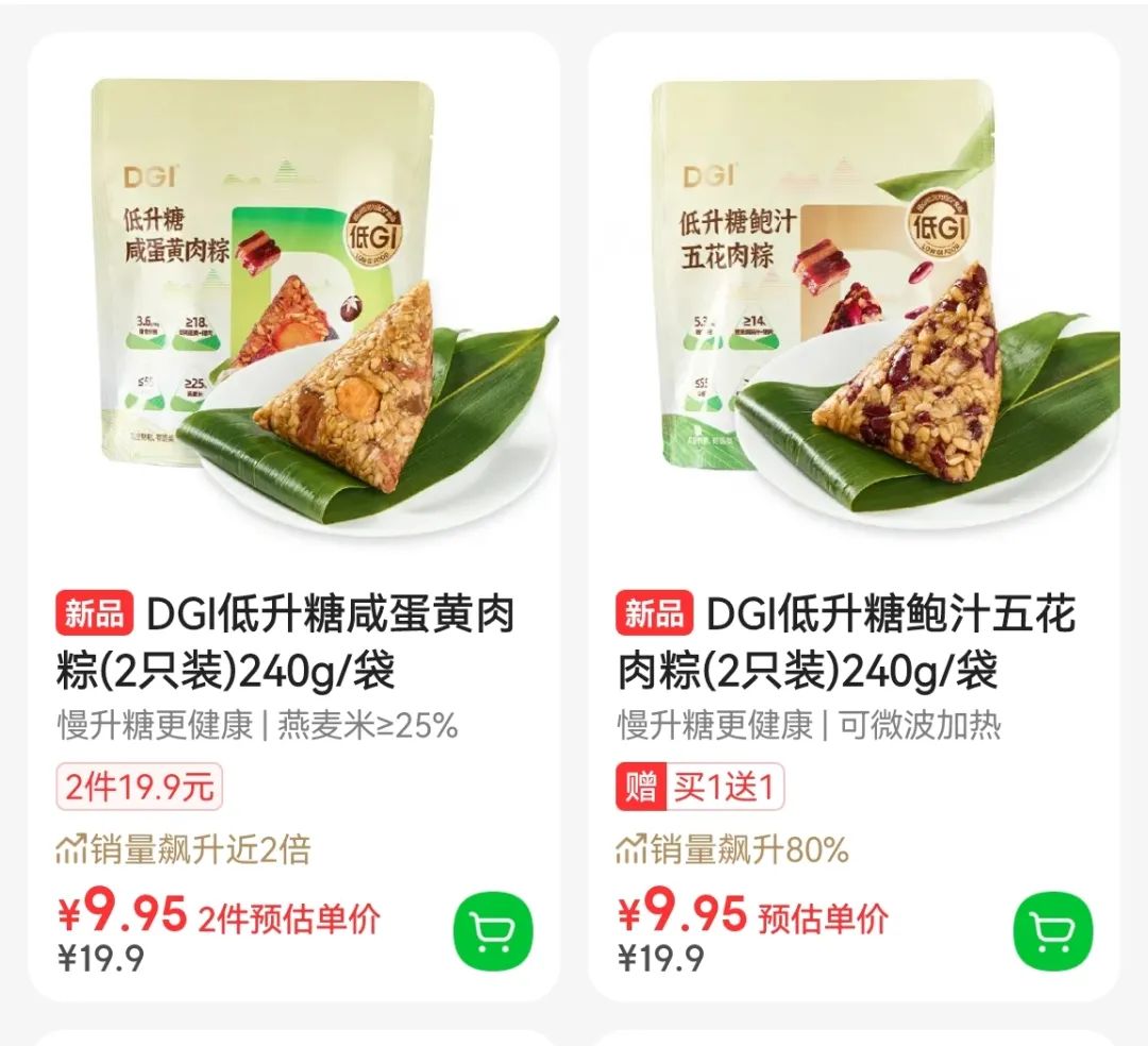 随着端午节的临近,粽子已经成为餐桌的主角。但与往年不同,今年的粽子市场不再只拼“咸甜”,而是悄然增加了一个新的卖点:“低GI”-低血糖指数。记者在“丁咚杂货店购物”平台上看到,除了五花肉饺子、蜜枣饺子、碱饺子等其他口味,两个低GI饺子的销量也不错。