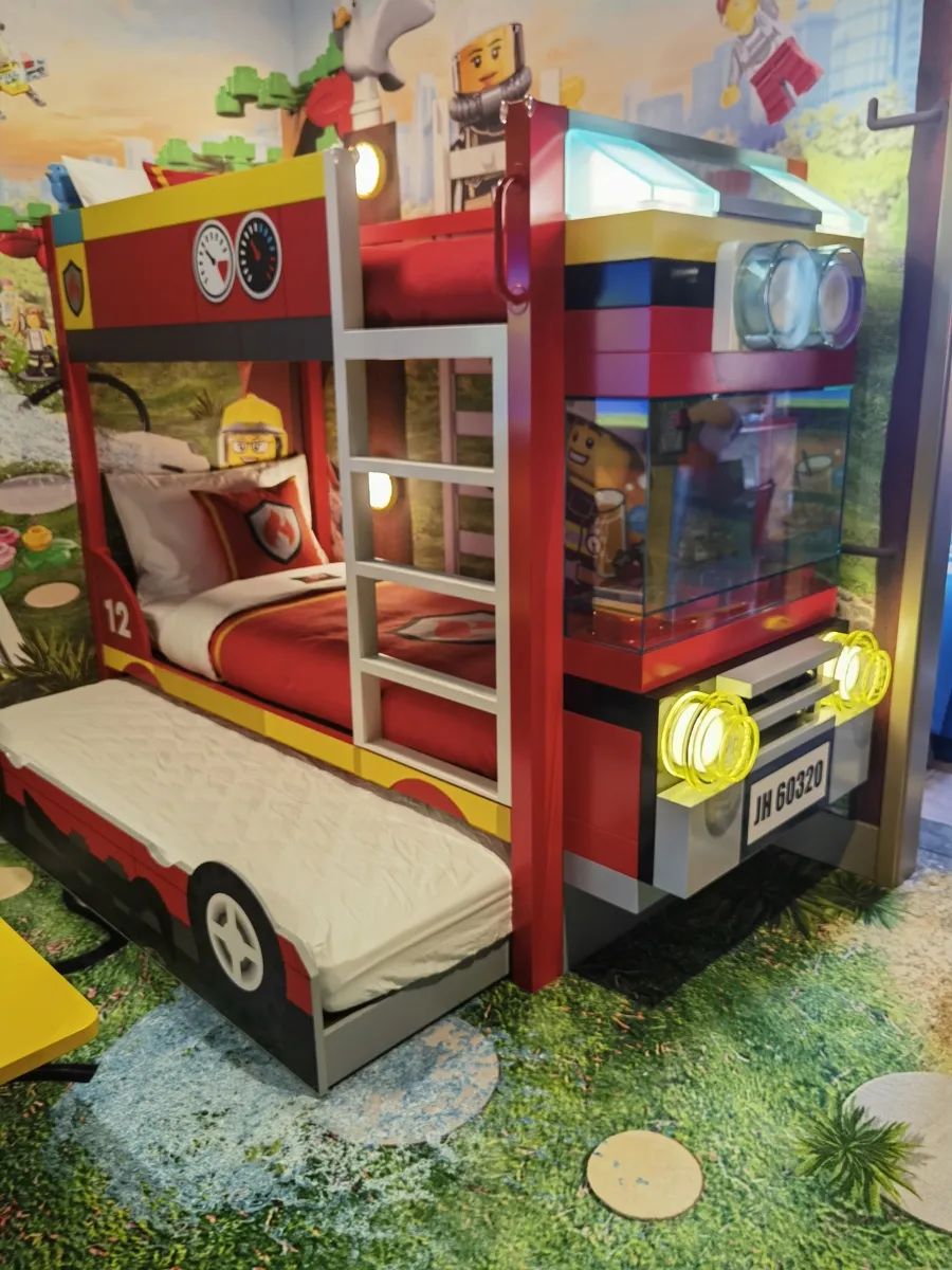 给记者留下深刻印象的是,在其中一个房间里,儿童床被设计成消防车的形状,而父母床上的床单是警车的图案。儿童床前有一个小凳子,旁边有一堆乐高积木,可以随时搭建,一直沉浸在娱乐中。