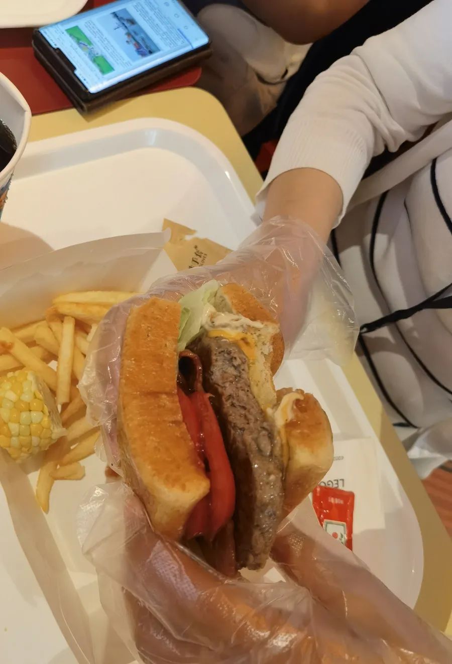 由于还没有正式运营,餐厅当天只提供了三种套餐:牛肉堡、鸡肉堡和虾堡,包括一个汉堡、一个薯条、一个玉米小吃和一杯可乐。价格分别是118元、88元和98元。品尝后,很多记者表示,如果公园正式开业后能保持这种餐饮口味水平,那就相当不错了。