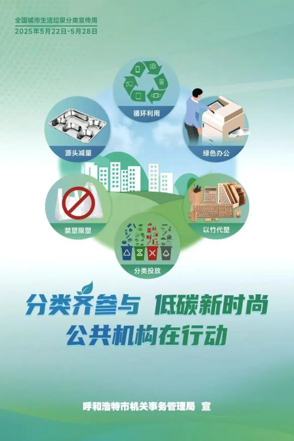 第三届全国城市垃圾分类处理宣传周于2025年5月22日至28日举行。本次宣传周的主题是“分类参与” 低碳新时尚”。
