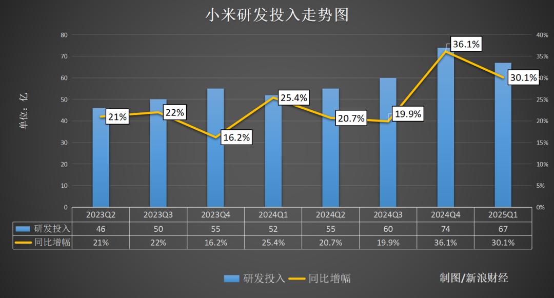 就R&D而言,今年一季度,小米R&D投资67亿元,同比增长30.1%,预计今年的R&D投资将达到300亿元。