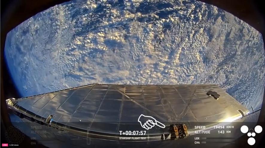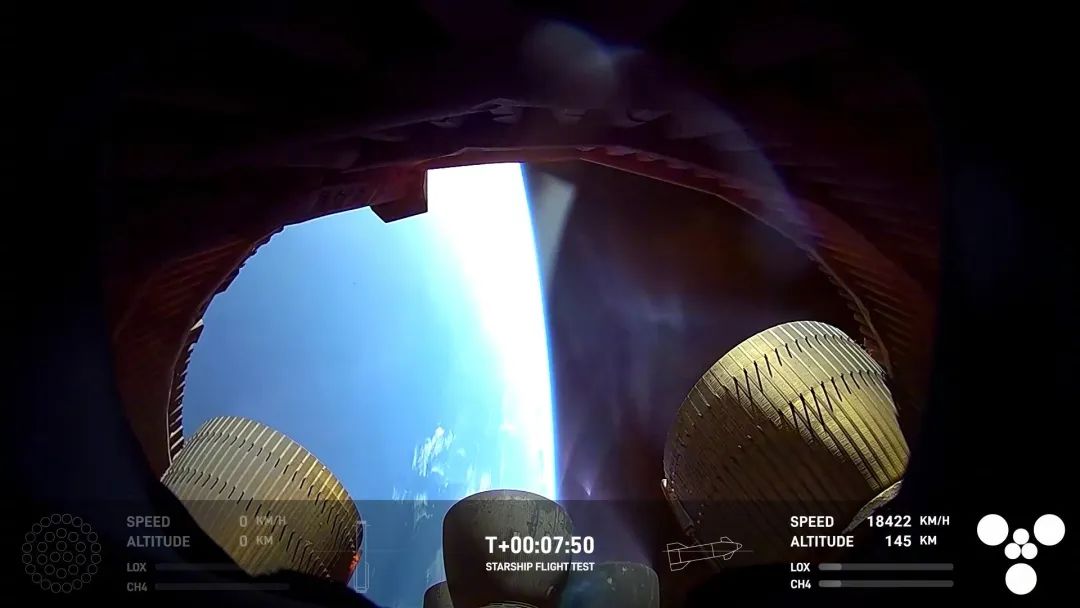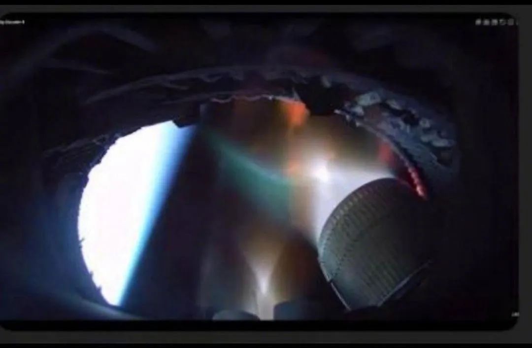 直播画面中,星舰S25姿态失控,撞入地球大气层的场景 | SpaceX