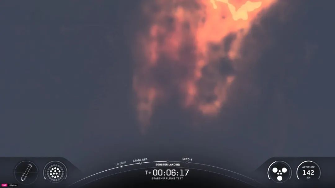 根据原来的试飞计划,即将着陆的试飞计划最后的降速阶段,它会专门关闭一台中央发动机,只使用两台发动机进行极限减速。,模拟其中一个出现故障的情况。 。当然,出于安全考虑,这次并没有像以前那样,试图让发射塔的“大筷子”夹住回收。