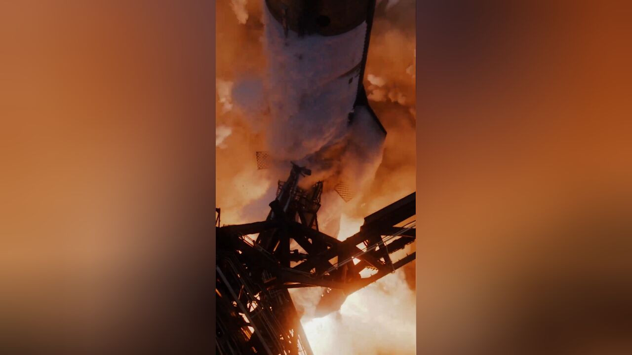2024年10月13日,星舰进行了第五次测试航行。星舰发射约6分50秒后,发射塔上的捕捉设备首次成功抓住了数百吨从天而降的火箭。这是人类第一次用这种方式回收火箭,网友生动地称之为“筷子夹火箭”。