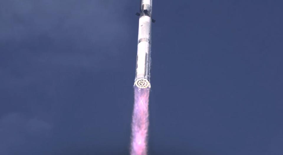 星舰“九飞”上升阶段画面,所有发动机正常工作