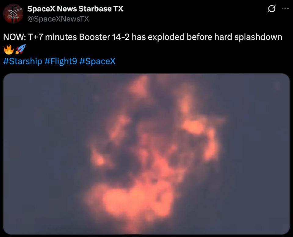 在回收过程中,用户反馈B14.2爆炸 来源@SpaceX News Starbase TX