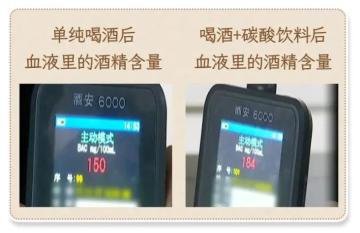 经检测发现,仅饮酒后,血液中的酒精浓度为150mg/ml;与汽水一起喝酒,血液中的酒精浓度为184mg/ml。