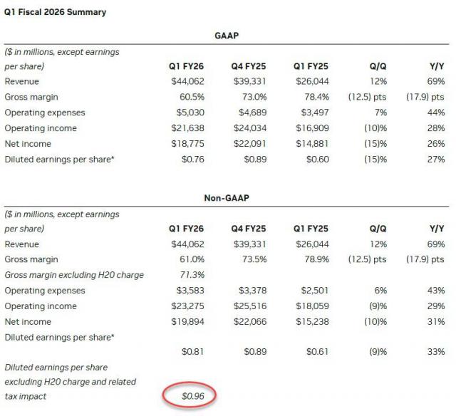 EPS:一季度非 GAAP 调整规格后的每股收益(EPS)为 0.81 美元,同比增长 33%,去除 H20 关税影响后的相关费用和关税 EPS 为 0.96 分析师期望的美金 0.93 美元,前一季度同比增长 71%。