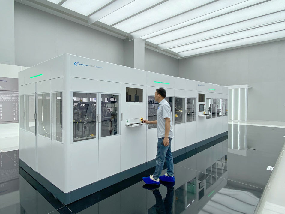 米开罗那(上海)工业智能科技有限公司展厅内的锂金属切叠机。