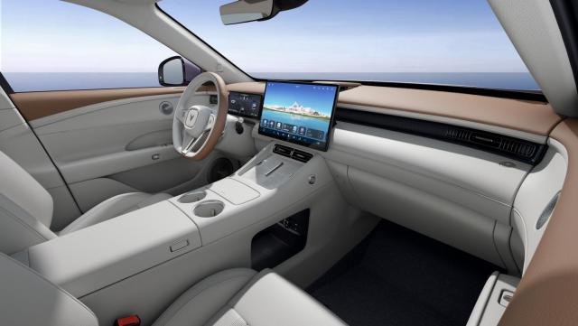 在内饰方面,新车采用了“浮光岛”的视觉风格和身临其境的五感体验设计,搭载了 15.6 一寸中控大屏,鸿蒙座舱 HarmonySpace 5 具有优异的自然交互能力,可以实现五屏联动。并且推出了琥珀棕、深海蓝三种全新的内饰颜色。 、极光紫。采用环保式驾驶舱设计,营造出温馨的驾驶感。另外,中央控制使用了" T “字形布局,屏幕下面是空调风口,还有两个手机的无线充电面板。