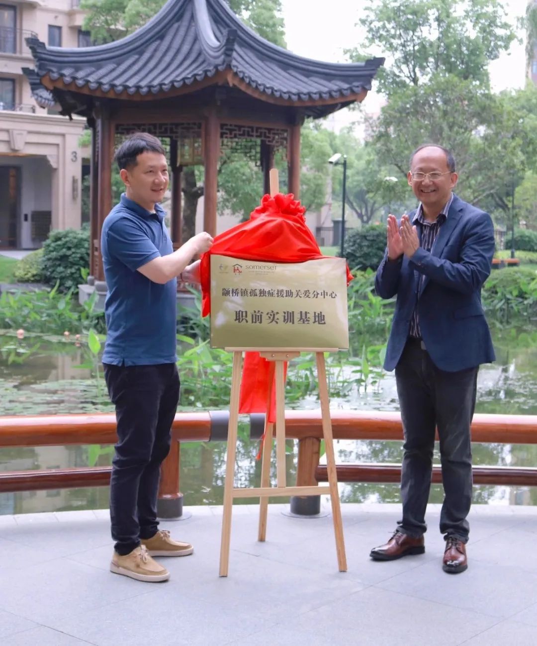 现场,上海盛捷星河湾星豪服务公寓揭牌,成为职前培训基地,该基地将为智障青年提供技能实践、职业孵化、社会融合等服务。