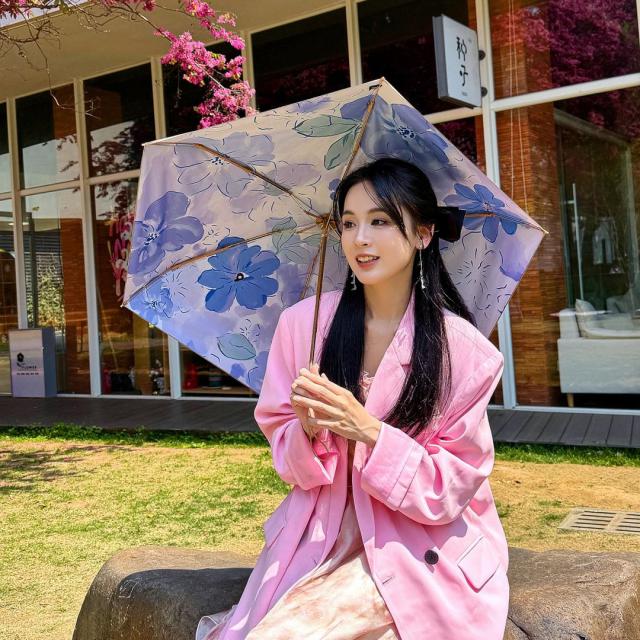夏紫流苏:优雅的蓝色花朵设在伞布上,自带清凉感,气质美女选择它一定是对的!