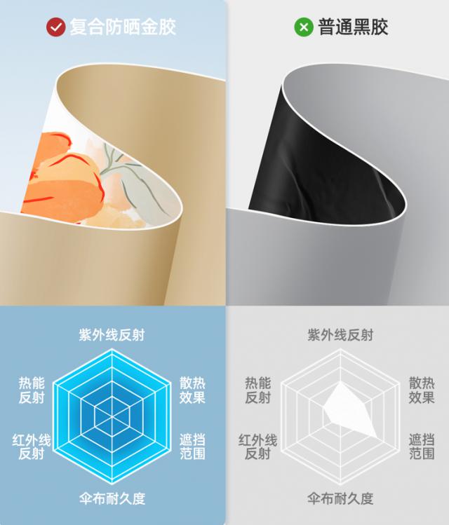 并且复合金黏胶就像张滤网一样,吸收热量,伞下顿感清爽!就像随身带着一台小空调。