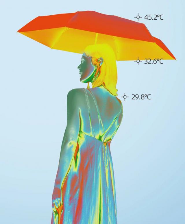 专业仪器测试,户外 37 ℃高温下,撑开小金伞,瞬间降温,体感温度立降近。 10 ℃ *!
