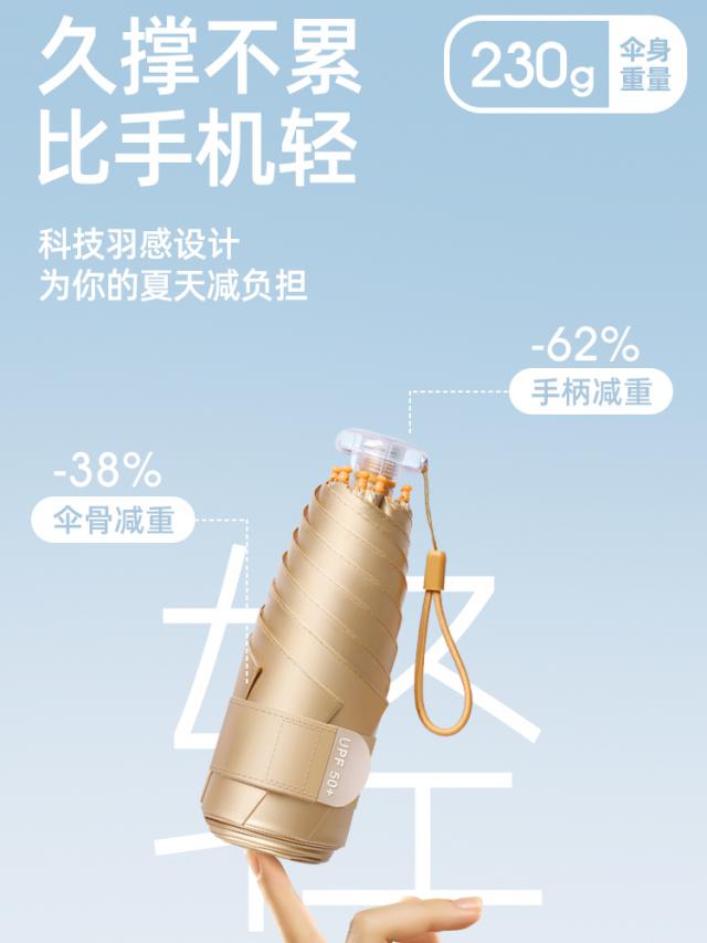 夏季外出带上 FIYU 小金伞,小、轻、薄优点全占优势,完胜、大、丑、厚的一般防晒伞!