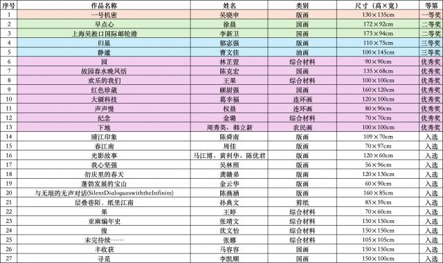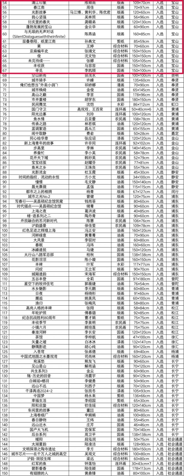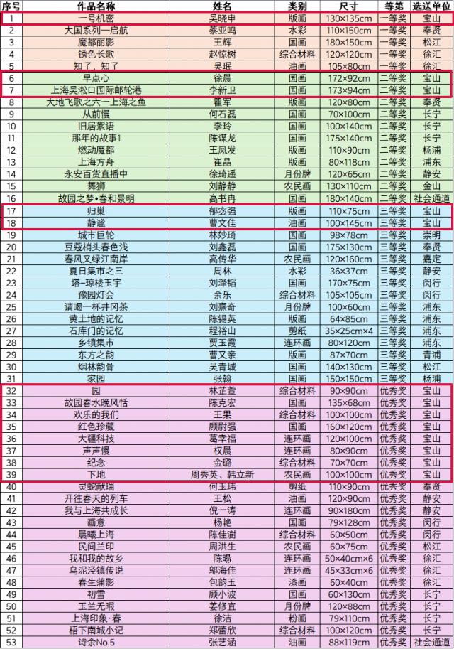 第 23 “江南之春”艺术作品展宝山区获奖,入选名单。