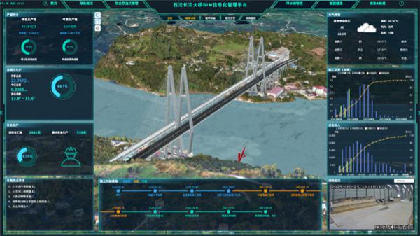 面临着极高主塔施工的诸多挑战,中铁大桥局创新应用 "BIM GIS 物联网 " 智能化建筑技术,构建了国内领先的桥梁智能化建筑管理平台。项目全生命周期数字化管理是通过数字孪生技术实现的,塔吊群安全管理系统是专门开发的,有效提高了施工效率和安全性。