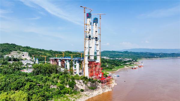 世界第一!渝万高铁双连塔大桥首座主塔封顶