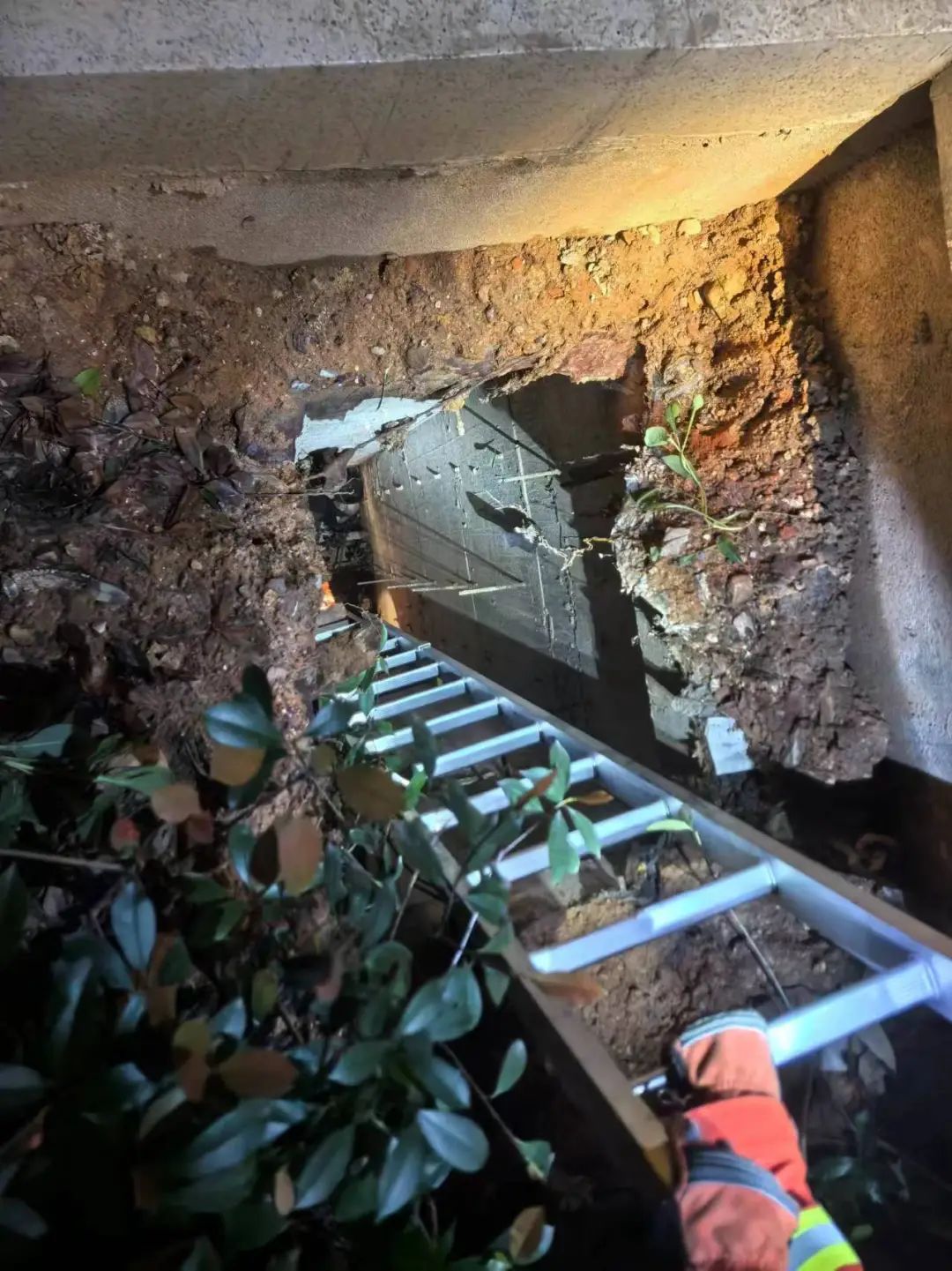 做好个人防护后,降到坑底。