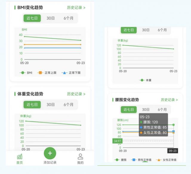 ★一键式生成变化趋势,有利于看到管理体重的结果,给自己更多的激励和鼓励。