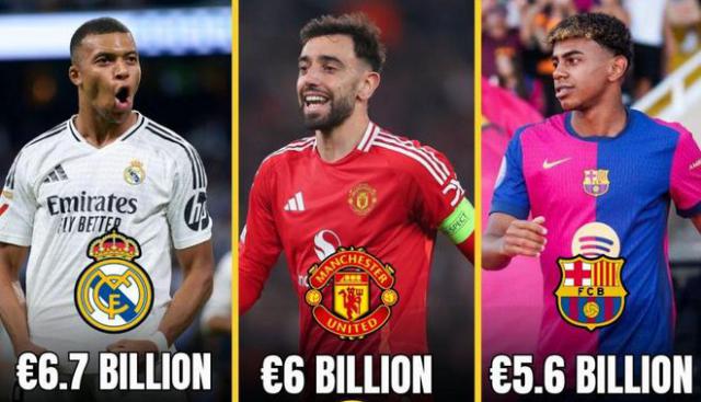 足球俱乐部价值榜:皇马67亿美元高居榜首 英超联赛第15杀到第二 巴萨第3