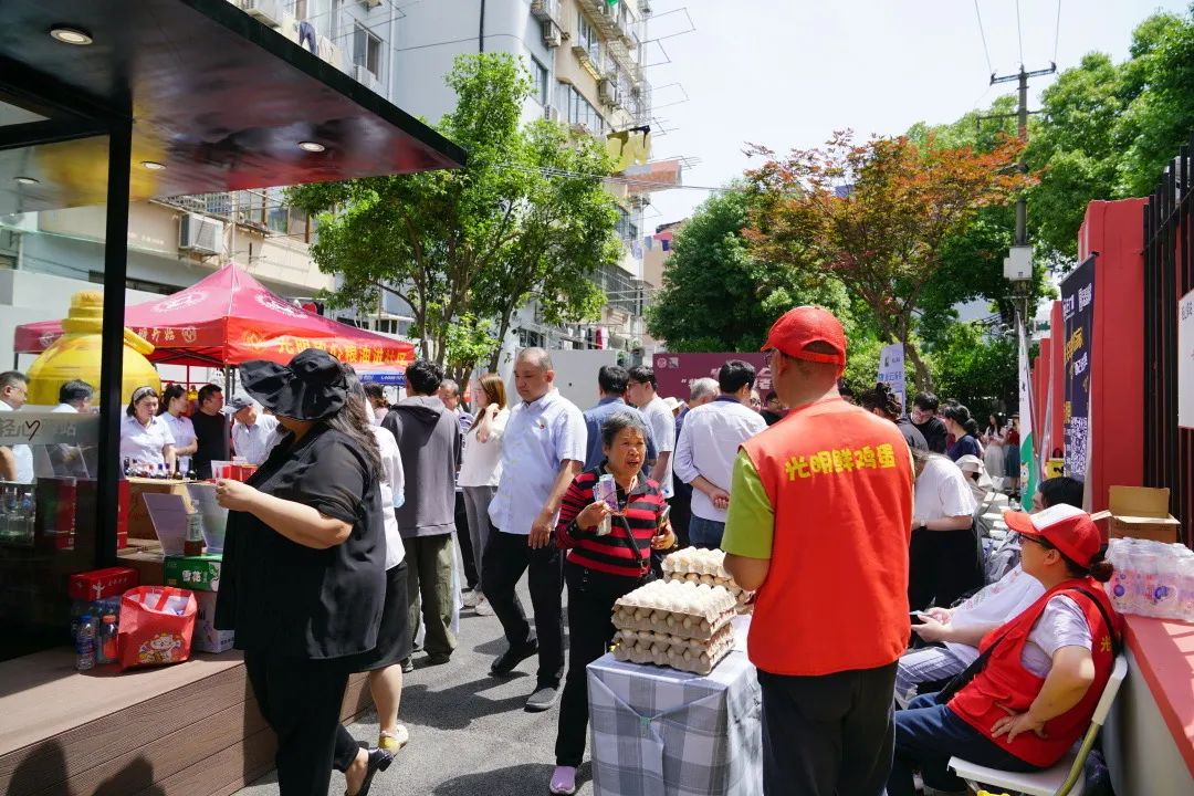 为了让居民更直观地感受到“物业” 居家养老带来的便利和利益也在现场举办了以“光明每天给你省一点”为主题的社区市场。近200个优质品类出现在光明乳业、光明肉业、上海农场等多家企业。现场除了提供品尝体验和方便直接供应外,还设置了咨询摊位和互动环节,让居民在家门口享受购物的快乐和贴心服务。