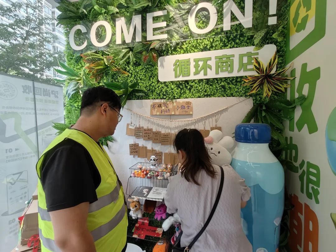 工作人员化身为“环保宣传专员”,通过实物展示诠释可再生能源产业链的价值。服务点可视化、互动化的感觉进一步加深了居民对垃圾分类和资源回收的认识。