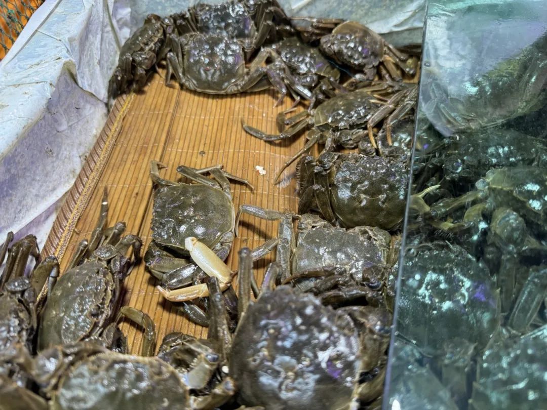 检验活力:快速翻盘,蟹脚毛软,呈褐黄色,是鲜蟹。