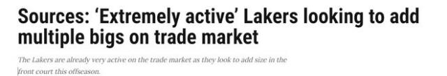 毫无疑问,湖人队迫切需要在中锋位置上加深互补性。整个联盟都知道这一点。在一定程度上,这个休赛期的成败取决于湖人队在多大程度上解决了这一迫切需求,以及他们是否会在谈判中被动。