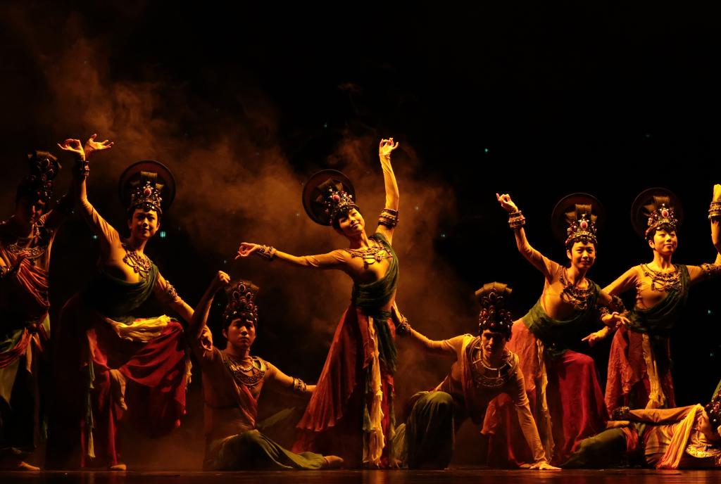 五月二十八日,演员们表演敦煌主题舞蹈《相印》。新华社记者 方喆 摄