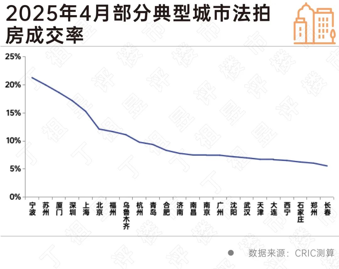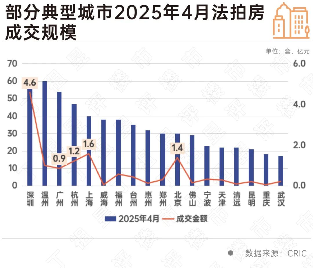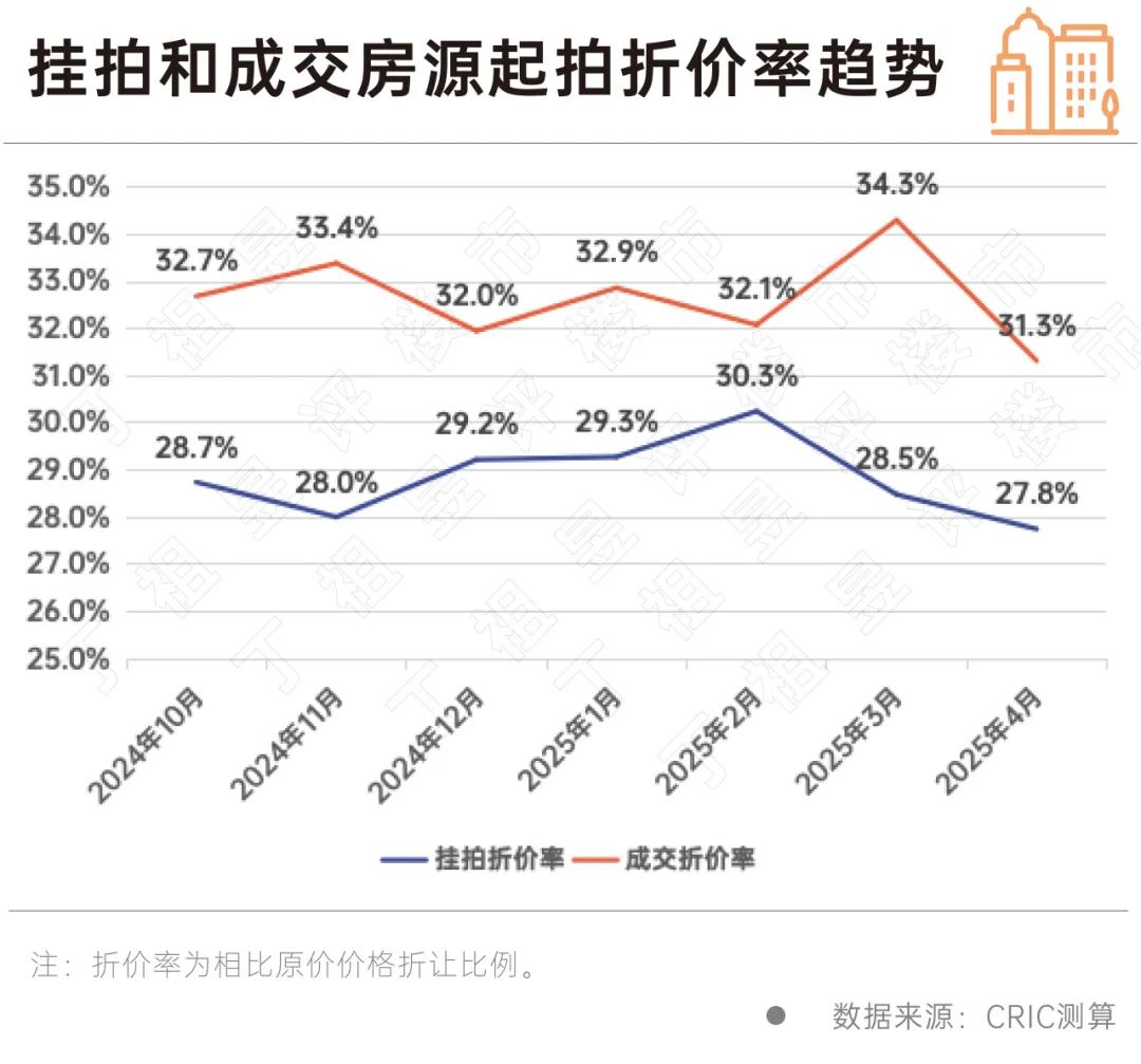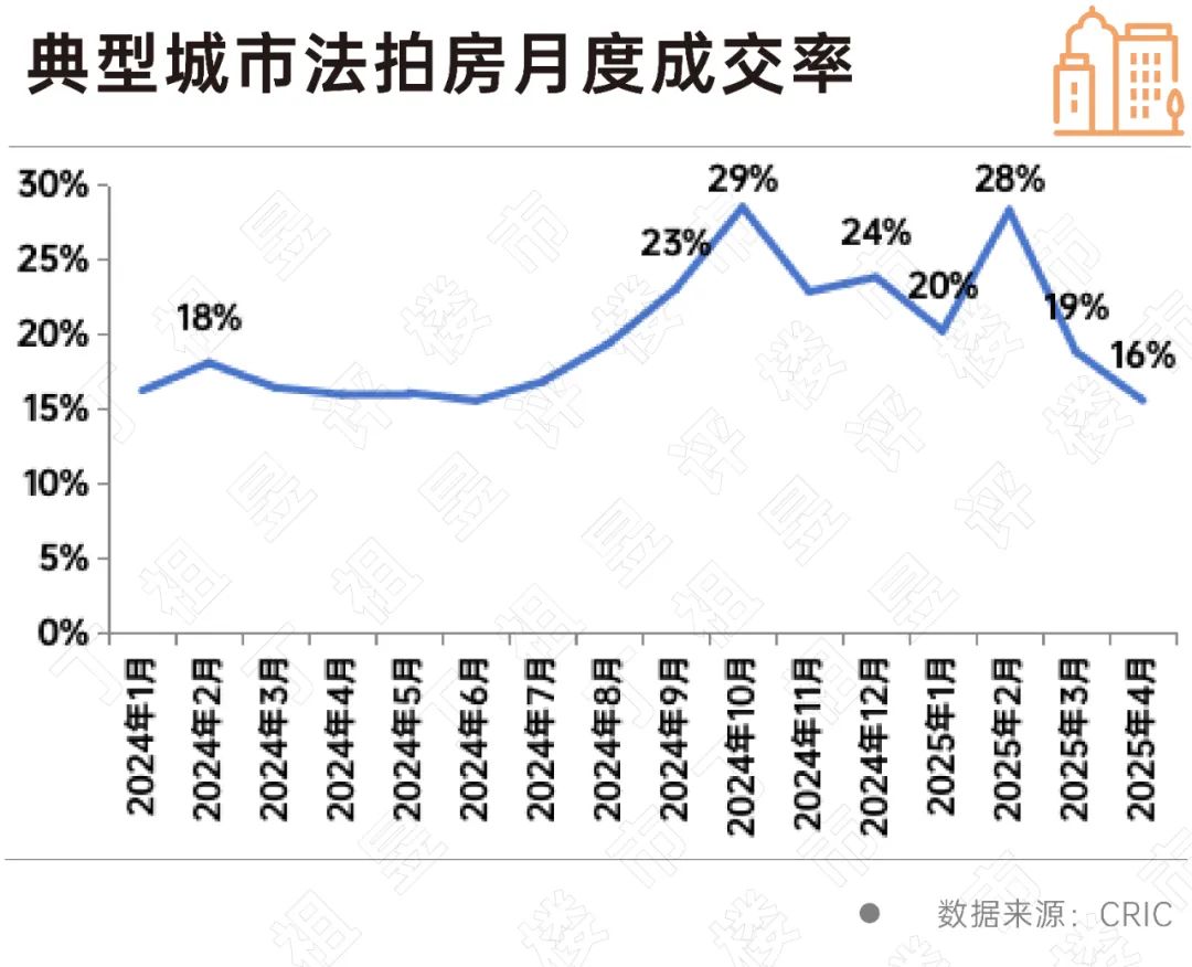 与此同时,根据CRIC统计调查数据,四月份法拍房成交率为16%,为2025年至今最低。法拍房交易热度普遍下降。