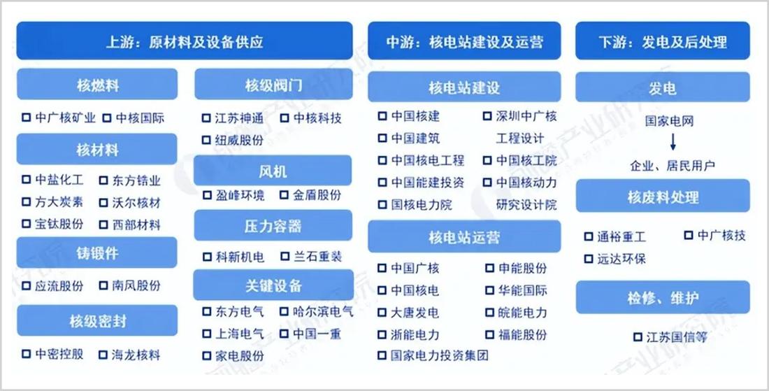 东方电气、上海电气、锻造铸件应流股份、南风股份、阀门江苏神通、压力容器兰石重装等核材料中的盐化工、方大炭素、核岛关键设备...