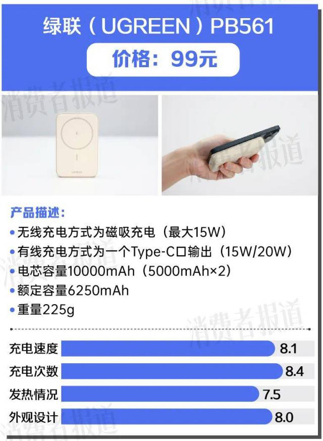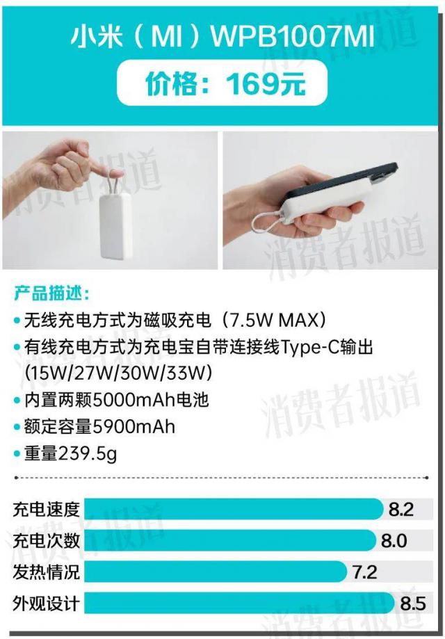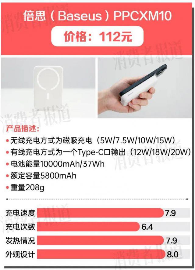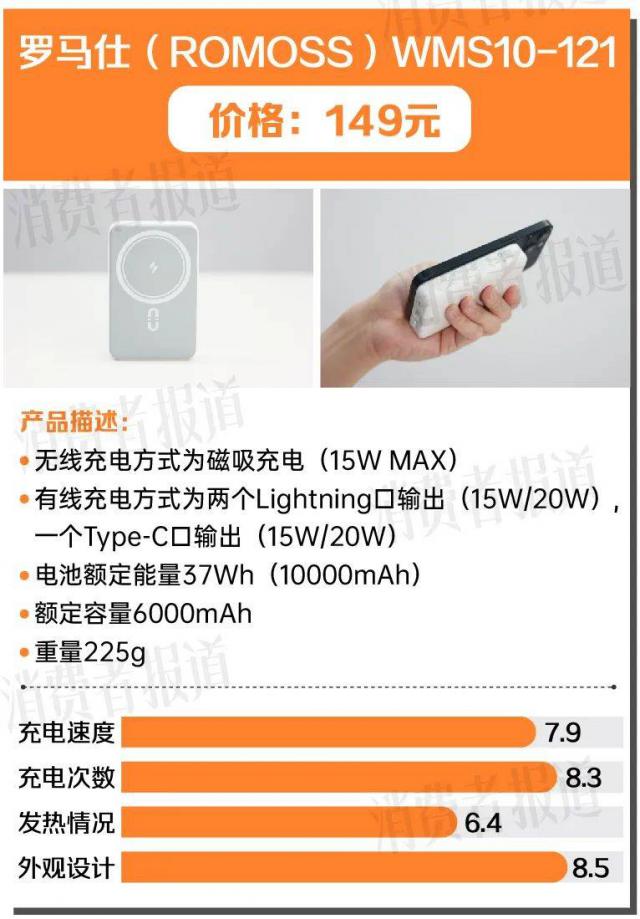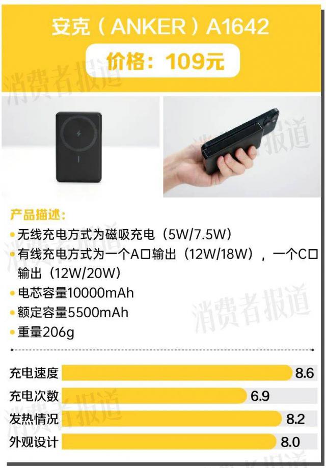 《消费报告》针对消费者的应用问题, 5 热销磁性充电宝进行了实际测量。评估项目主要包括充电效率、充电次数、工作温度、外观设计。