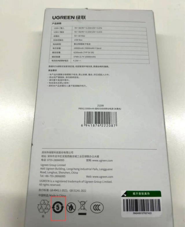 充电宝包装上的 5 年度图标是指“环保有效使用期”
