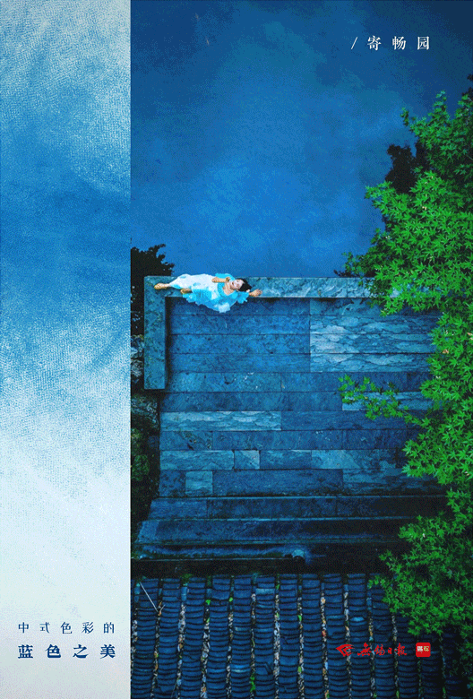 送畅园的蓝色是破碎的蓝色,从九霄坠入世界。天空倾泻而出,金色涟漪的水面染上流动的青玉,朱栏画栋倒映其间,仿佛蓬莱仙阁沉入硫璃海。风过的时候,成千上万的波浪变成了一点点的碎玉,就像李太白书中“仙垂两足,桂树何一团”的幻境再现一样。