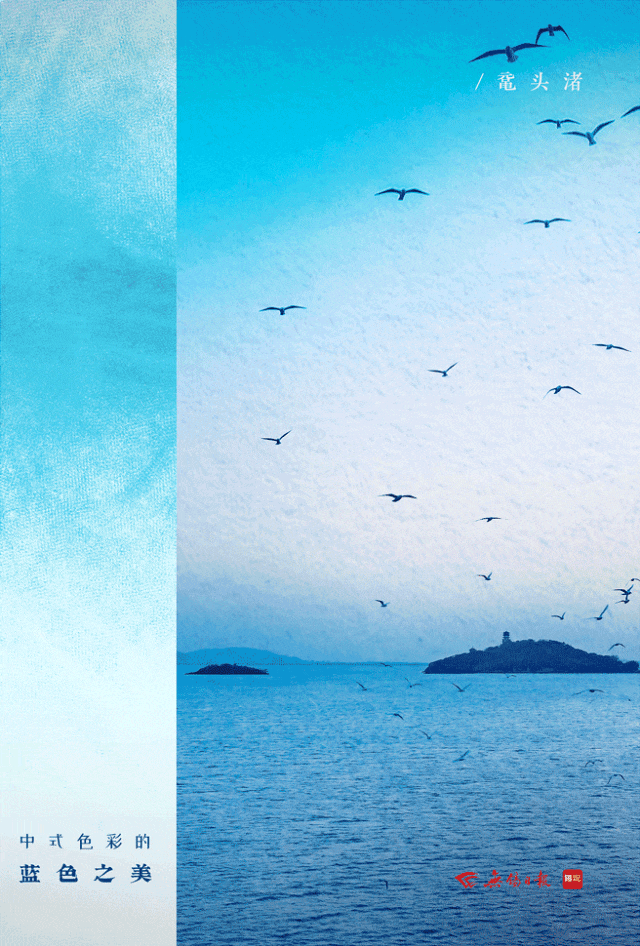 破晓时的蓝色是《赤壁赋》中“东方是白色的”的出生复制品。天空微弱的时候,水和天空的交汇处散发出温暖的蓝白,就像苏轼书中“我不知道东方是白色的”的朦胧意境。渐渐醒来的水面就像一幅晕染的水墨画。天水一色,红嘴鸥伸出银翅划破天空,掠过浪尖,像碎玉一样连接晨光。