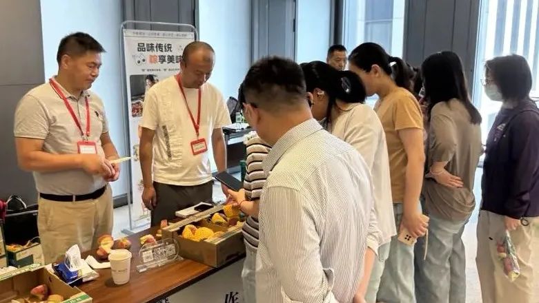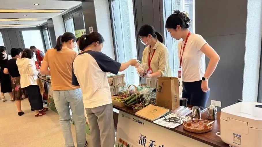 现场气氛热烈,品尝体验、扫码取货、咨询交流不断。许多中国商业飞行员工留下来购买。同时,涌河农场、西郊农场露营地、家绿彩虹农场等当地休闲文化旅游项目同步推荐,进一步拓展了“松江良品”的品牌内涵和消费模式。