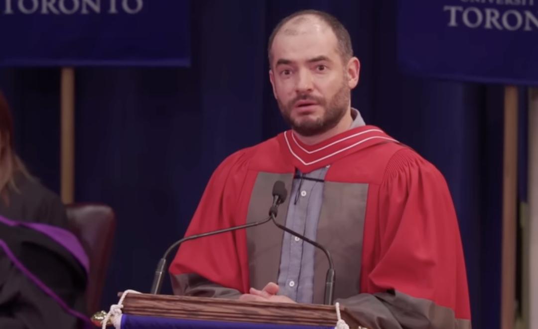 他回到了20年前大学毕业的讲台——作为荣誉博士的获奖者,他发表了演讲。他说这是他在母校多伦多大学获得的“第四学位”。