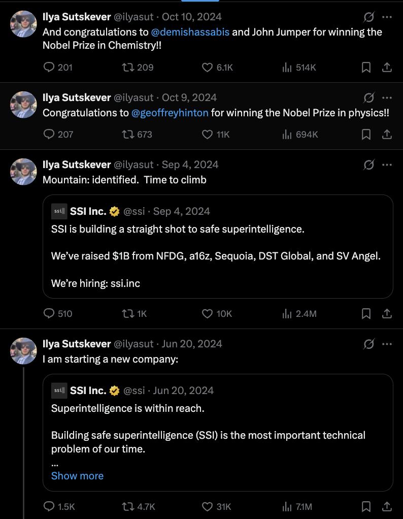 值得一提的是,这其实是OpenAI辞职后的第一次亮相。他最新的文章还停留在去年的诺贝尔奖祝福上,更早的时候是他的创业官方公告。