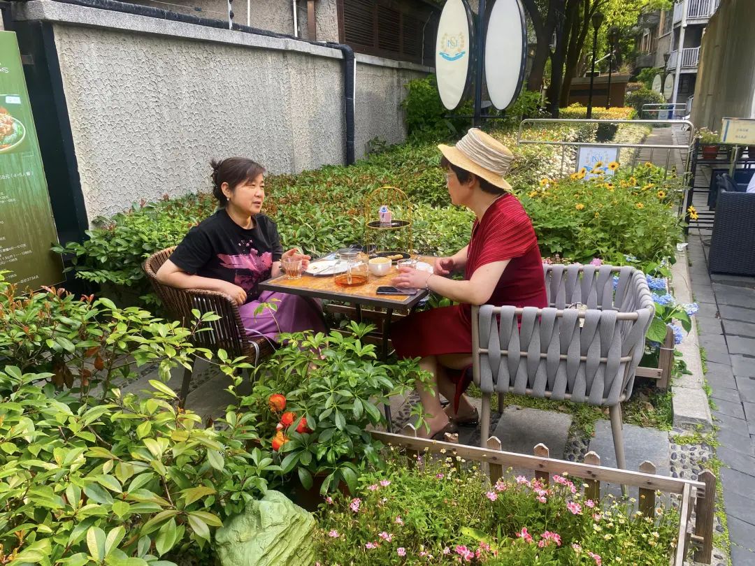 退休的阿姨妈妈是一群善于享受生活的人。在绿色植物和鲜花包围的地方喝下午茶是浪漫和文艺的。海派下午茶充满了气氛。