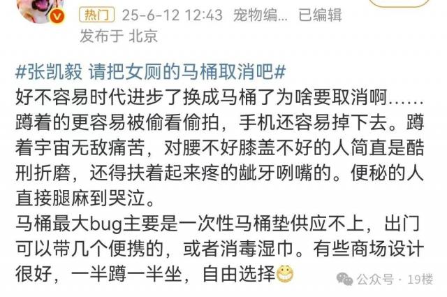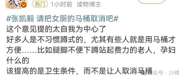 张凯毅对女厕马桶的撤销建议引起了众多网友的赞同,纷纷表达了大家的心声。