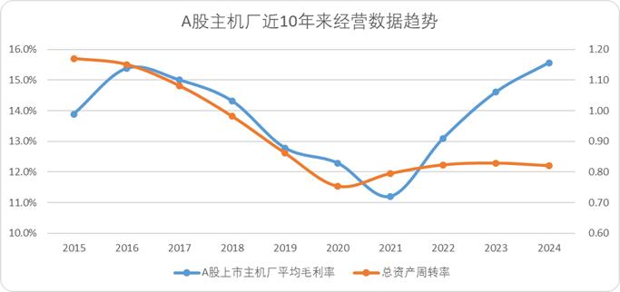与此同时,尽管大家都在谈论内卷,谈论造车不赚钱,但以a股上市的原始设备制造商为例,2024年整体法下的毛利率平均达到15.6%,达到近十年来的最高水平。