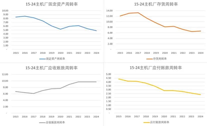 但从另一个角度来看,在过去的五年里,原始设备制造商的总资产周转率并没有随着利润和销量的增长而回升。如果仔细看原始设备制造商的各种周转指标: